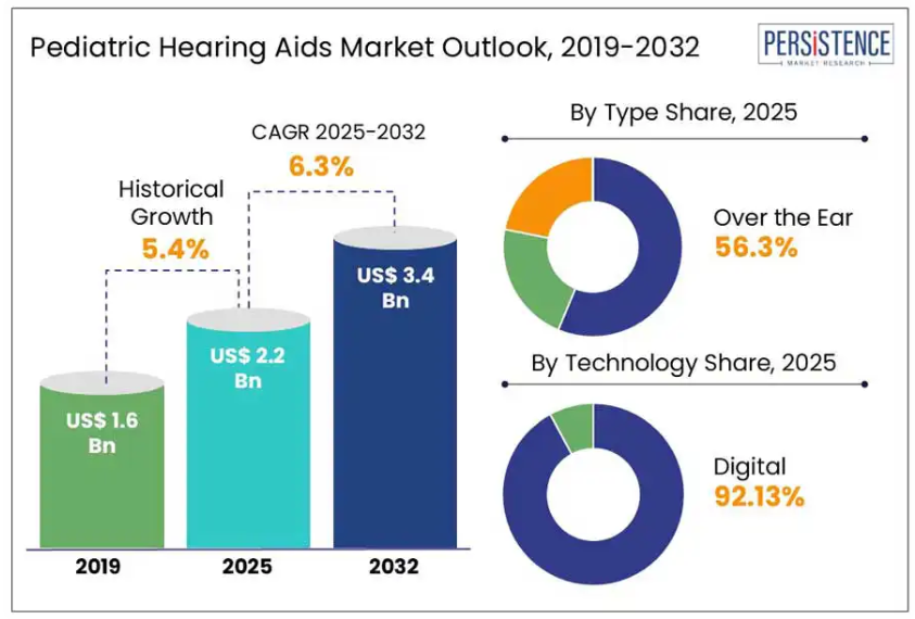 世界の小児用補聴器市場は、2025年に22億ドル規模に達すると予測されており、2032年までに年平均成長率(CAGR)6.3%で34億ドル規模に成長する見込みです。