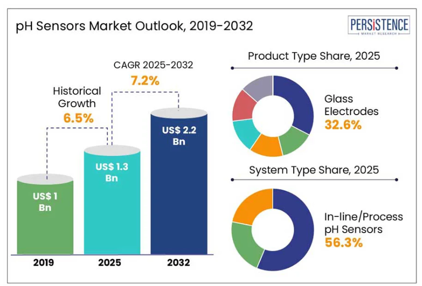 パーシステンス・マーケット・リサーチの報告書によりますと、様々な産業分野における精密かつ信頼性の高いpHモニタリングへの需要増加を背景に、業界は著しい成長を遂げております。pHセンサーは、製品品質の維持、規制順守の確保、および運用プロセスの最適化に不可欠です。水処理、食品・飲料製造、医薬品、環境モニタリングなどの分野で広く活用されております。