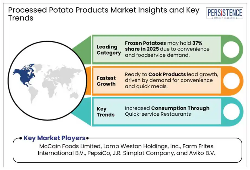 食習慣の変化、スナック食品消費の増加傾向、冷凍および調理済みポテト製品の人気拡大が市場を後押ししております。食品加工、包装、コールドチェーン物流における技術革新により、製品の品質と保存期間が向上しています。北米は確立された食品産業と高い一人当たり消費量により市場をリードしていますが、アジア太平洋地域の業界は、生活様式の変化、中産階級人口の増加、近代的な小売チャネルへのアクセス拡大を背景に急速に成長しています。