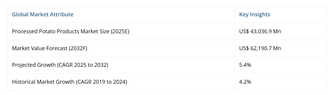- 世界の加工ポテト製品市場概況(2025年および2032年)