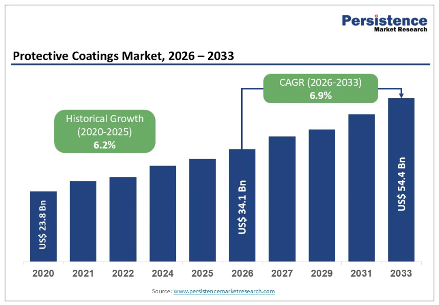 世界の保護コーティング剤市場の規模は、2026年には341億ドルと評価される見込みであり、2033年までに544億ドルに達すると予測されています。