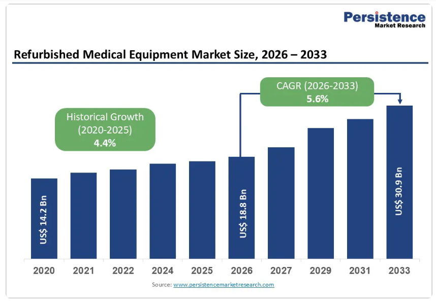 世界的な医療費の急増により、病院、診断センター、専門クリニックは臨床効率を損なうことなくコスト最適化戦略を採用せざるを得なくなっています。MRIシステム、CTスキャナー、カテーテル検査室ユニット、人工呼吸器、麻酔装置などの資本集約型医療技術は多額の初期投資を必要とし、中規模および公的機関にとって調達上の課題となっています。再生医療機器は、認定および品質試験を経た場合、同等の性能基準を維持しながら新品システムより30~60%低価格となることが多く、経済的に実現可能な代替手段を提供します。