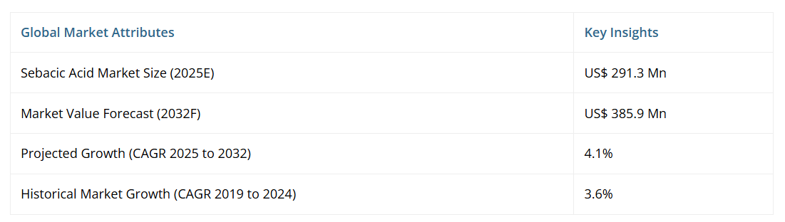 - ラテンアメリカ セバシン酸市場展望:過去実績(2019年~2024年)および予測(2025年~2032年)