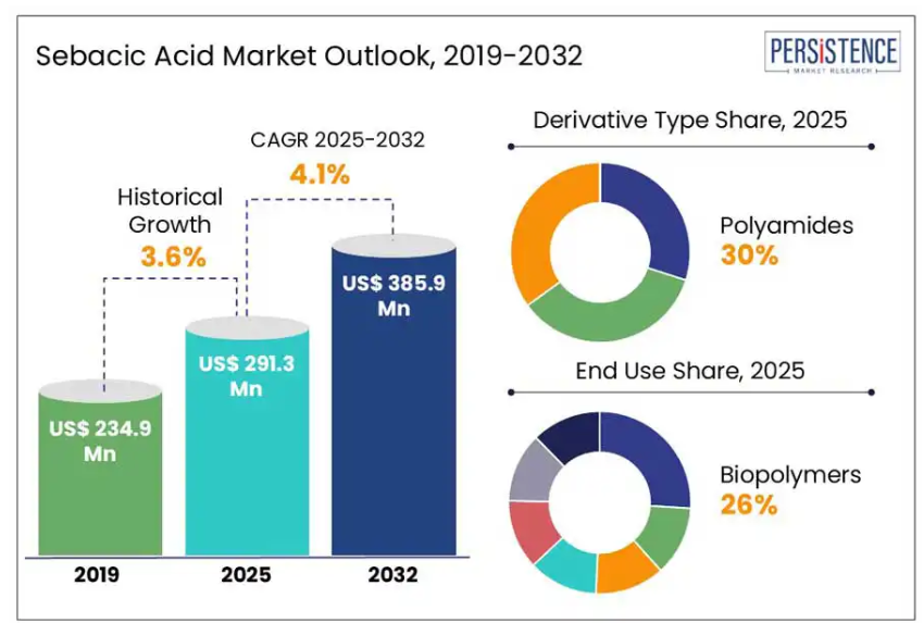 - ヨーロッパセバシン酸市場展望:過去実績(2019年~2024年)および予測(2025年~2032年)