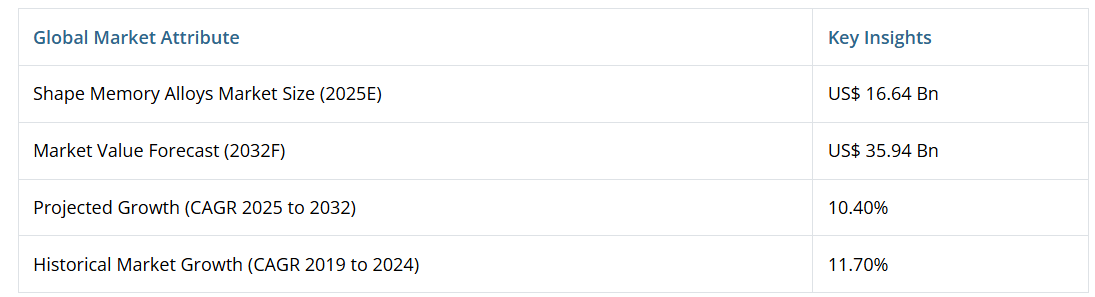 - 世界の形状記憶合金市場概況(2025年および2032年)
