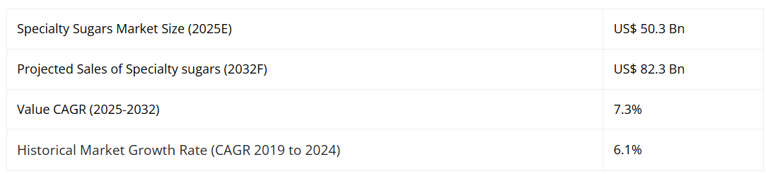 特殊糖類の市場は、年間成長率7.3%で拡大し、市場規模が503億ドルから2032年までに約823億ドルへ増加すると予測されております。