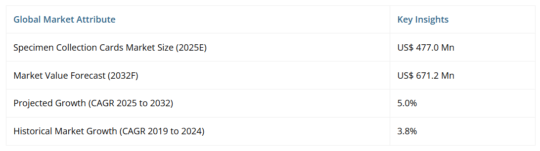 - 世界の検体採取カード市場概況(2025年および2032年)