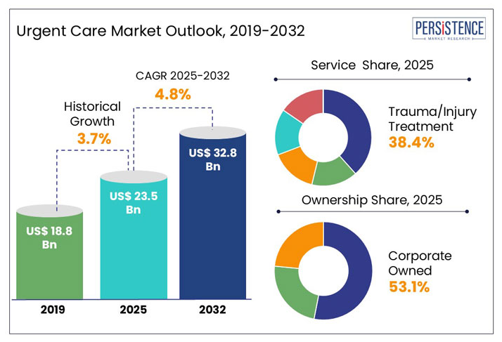 緊急医療市場は、生命に関わる状態ではない怪我や病気に対して即時的な医療処置を提供することで、救急医療と一次医療の間のギャップを埋める専門的な医療サービスです。