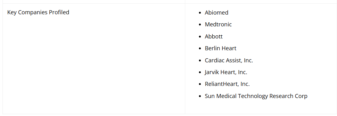 世界の心室補助装置市場における主要企業は、Abiomed、Medtronic、アボット、Berlin Heart、Cardiac Assis Inc. です。