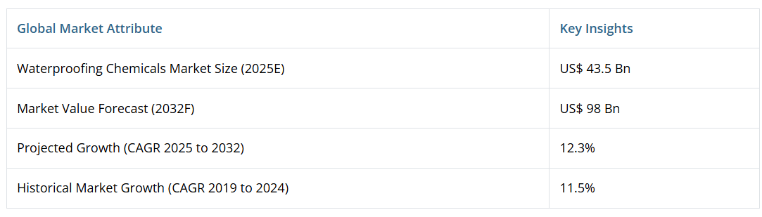 1. 北米防水化学品市場の見通し:過去実績(2019年~2024年)および予測(2025年~2032年)