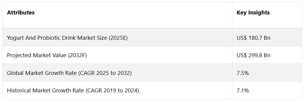 世界的なヨーグルトおよびプロバイオティクス飲料市場は、年平均成長率(CAGR)7.5%で拡大し、2025年の1807億米ドルから、2032年末には2998億米ドルに増加すると予測されています。